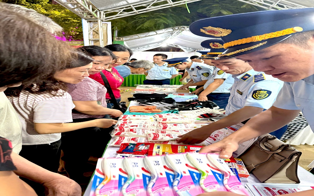 Chỉ đạo trực tiếp từ gian hàng, đồng chí Đặng Thị Huyền, Phó Chi cục trưởng Chi cục QLTT nhấn mạnh: “Công tác tuyên truyền, hướng dẫn nhận diện hàng thật - hàng giả là một trong những giải pháp quan trọng, thiết thực giúp người dân chủ động phòng tránh mua phải hàng kém chất lượng, đồng thời góp phần cùng lực lượng quản lý thị trường đấu tranh, ngăn chặn hành vi gian lận thương mại.”