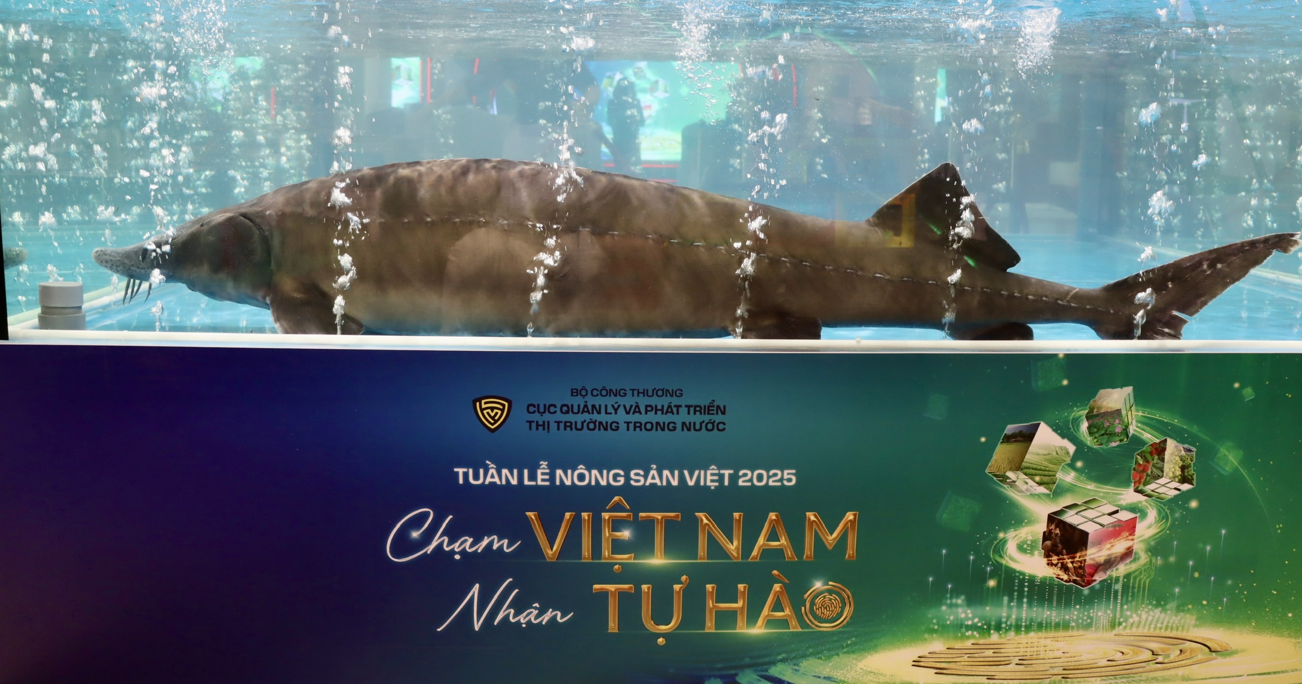 Điểm nhấn đặc biệt của chương trình là việc Cục Quản lý và Phát triển thị trường trong nước đã hỗ trợ, kết nối để Hợp tác xã Dương Yến - một trong những cơ sở nuôi cá tầm lớn của tỉnh Lai Châu giới thiệu và tiêu thụ thành công cá tầm nặng 50kg được xem là “kỷ lục” trong các trang trại nuôi cá của địa phương. Thành công này không chỉ tạo ấn tượng mạnh mẽ tại sự kiện mà còn khẳng định chất lượng, thương hiệu nông thủy sản Việt trên thị trường.
